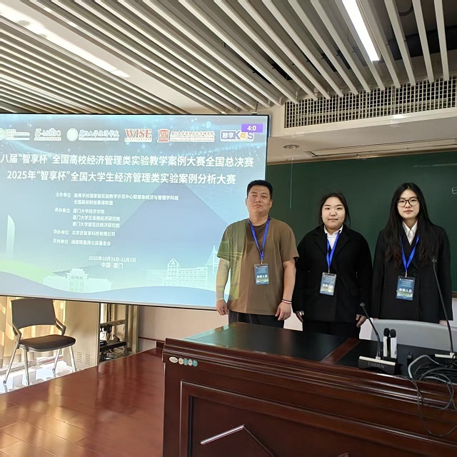 近日,第八届“智享杯”全国高校经济管理类实验教学案例大赛全国总决赛暨2025年“智享杯”全国大学生经济管理类实验案例分析大赛在厦门大学圆满落幕。晋中信息学院淬炼商学院2名学生在宋帅老师的带领下,历经区域赛层层选拔与激烈角逐,最终凭借扎实的专业功底、创新的案例分析思路,在39支晋级总决赛的学生团队中斩获全国三等奖,为学校赢得荣誉。