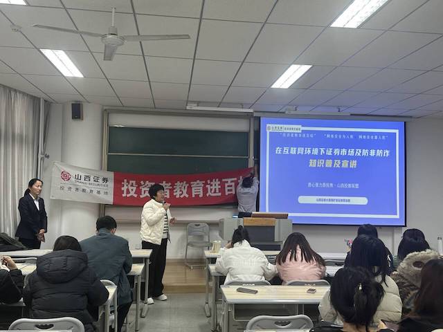 为深化产教融合、推进校企协同育人,响应“推动投资者教育纳入国民教育体系”的号召,11月26日14:30-15:30在7教204金融教研室联合山西证券投教团队,面向2025级互联网金融专业专升本学生,共同举办了“投资者教育进百校”专题活动。该活动主题为“互联网环境下证券市场及防非防诈知识普及宣传”,以证券市场交易知识、防非防诈技巧、反洗钱知识为核心,通过专业化宣讲与互动式分享,为青年学子筑牢金融安全防线,搭建了理论与实践衔接的桥梁。