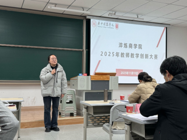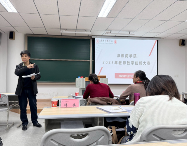 为深化教育教学改革,推进立德树人根本任务落实,淬炼商学院11月19日在7教104教室举办2025年教师教学创新大赛。学院特邀苗迎春、曹翠珍、阎俊爱等5位教授担任本次大赛评委,全体教师到场观摩学习,大赛由学院教学副院长马小美主持。