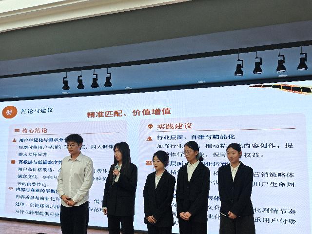 26支团队依次登场,他们通过PPT演示、数据图表等形式,在有限时间内精准呈现调研核心成果。参赛团队的调研选题紧扣时代脉搏与现实需求,涵盖山西文旅、数字消费、企业管理、社会服务等多个领域,既有对县域电商物流、社区养老服务等民生议题的深度探索,也有对Z世代消费行为、国潮品牌传播等新兴热点的敏锐洞察。各团队的报告数据翔实、逻辑清晰,充分展现了我校学子扎实的专业功底与创新思维。