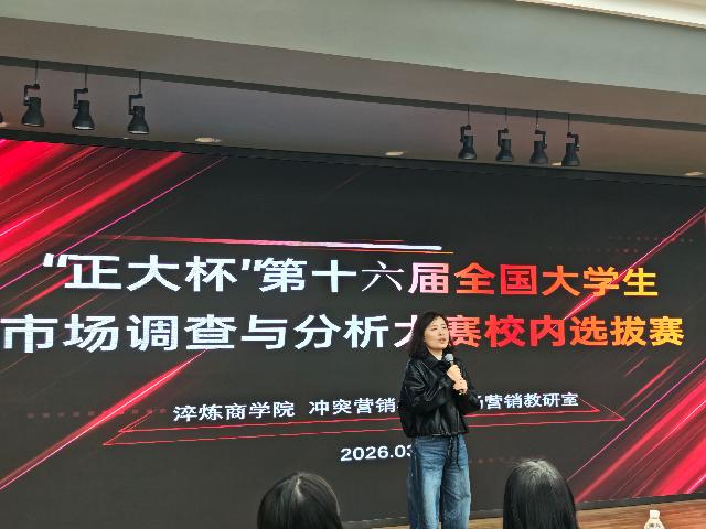 自2025年下半年“正大杯”第十六届全国大学生市场调查与分析大赛正式启动以来,淬炼商学院市场营销教研室牵头赛事筹备与组织工作,始终坚持“以赛促学、以赛促教、以赛促创”为核心,搭建高水平实践育人平台。历经层层选拔与精心筹备,从近千名学子的踊跃报名,到612名选手闯过知识赛,再到三月初赛的专业比拼,直到3月18日,校内选拔赛完美收官。24支优秀团队脱颖而出,将代表我校征战省赛,用数据智慧书写青春答卷。