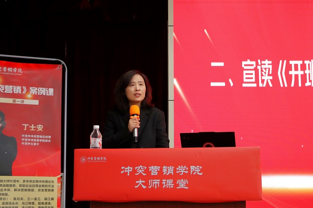仪式的重要环节,冲突营销学院院长丁士安上台致辞。他围绕冲突营销领域的发展与实训班的价值展开分享,话语间满是对学员们的期许,致辞结束后,现场响起长时间的热烈掌声。最后,全体参会领导、教师与学员共同合影留念,定格下这一意义非凡的瞬间,开班仪式在温馨的氛围中落下帷幕。