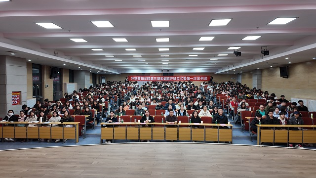 开班仪式按照七项议程有序推进,现场气氛庄重而热烈。首先,主持人闫晓珊老师逐一介绍出席仪式的领导与嘉宾;紧接着,淬炼商学院院长、冲突营销学院副院长赵欣上台宣读《晋中信息学院冲突营销学院第三期实训班开班通知》,为学员们明确了实训期间的目标与方向。随后,主持人闫老师以冲突营销学院主管的身份,详细介绍了学院的培养方案,让学员们对后续的学习内容、实践安排有了全面了解。