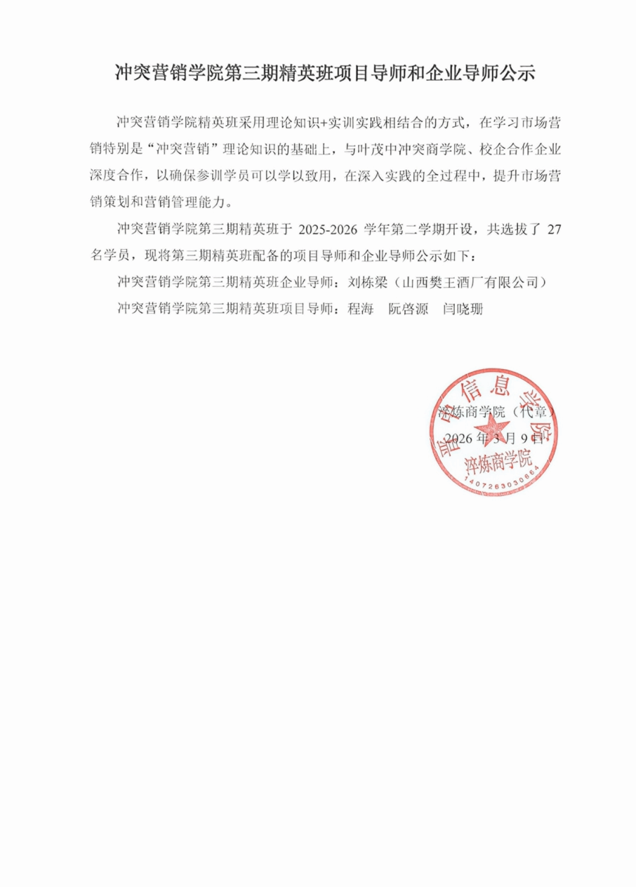【冲突营销】冲突营销学院第三期精英班项目导师和企业导师公示