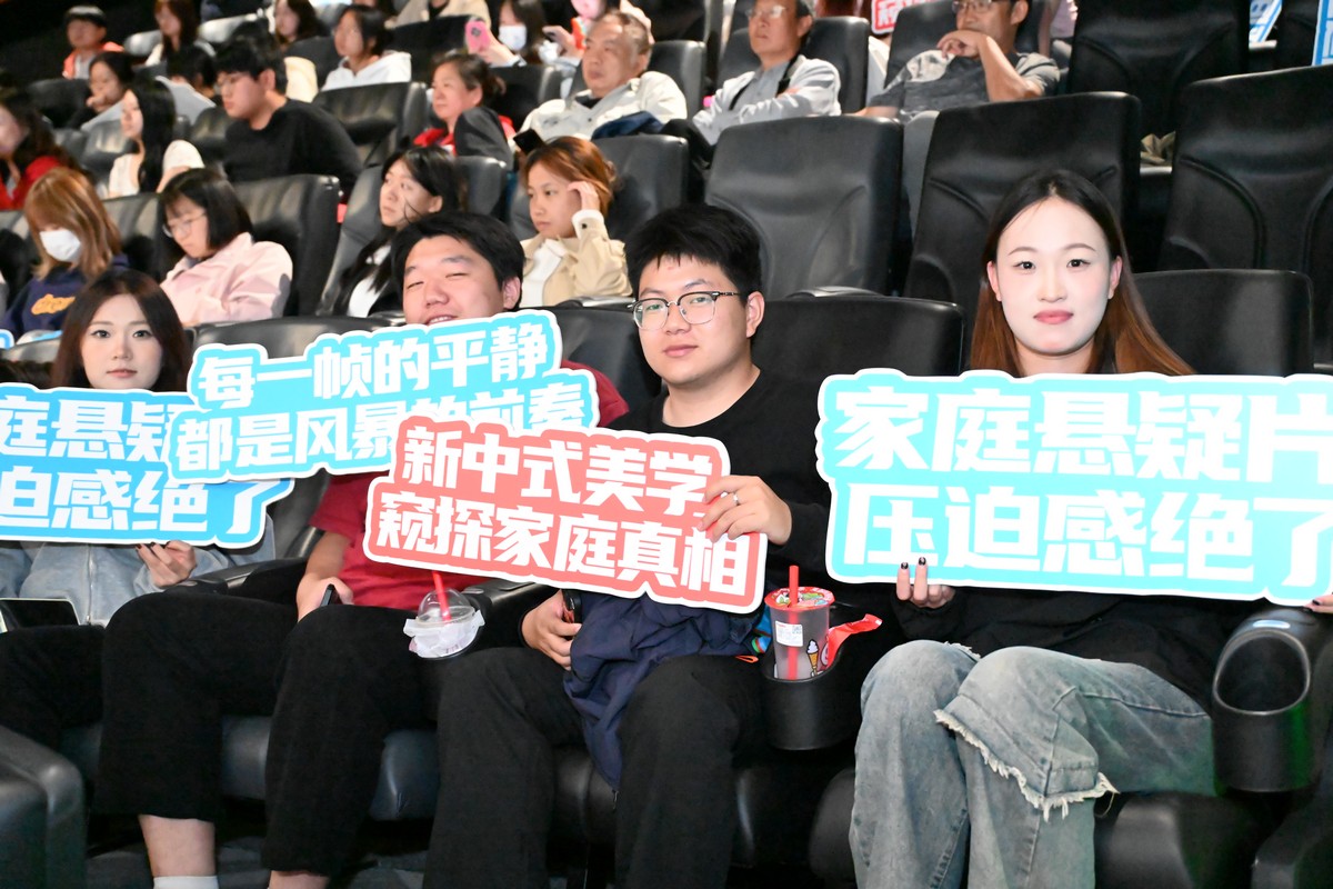 活动伊始,万画影城的放映厅内座无虚席。随着银幕亮起,影片以其独特的“新中式视觉美学”瞬间攫住了所有人的注意力。对称构图下暗涌的不安、暖色灯光中渗透的冷调情绪、餐桌戏份中令人窒息的戏剧张力……导演林见捷以其生物学专业背景的精准观察力,将中产家庭内部无形的情绪张力,转化为一幕幕可感的视听体验。影片围绕一个因神秘少年闯入而分崩离析的三口之家展开,对亲子关系、教育焦虑与情感荒芜的深刻刻画,让在场许多同学在静默的观影中,仿佛“看到了自己和家人的影子”,内心受到强烈震撼。