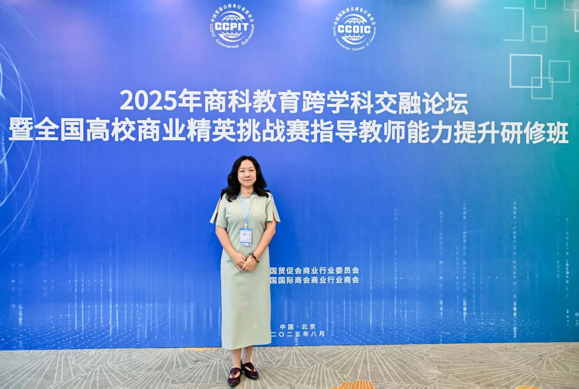 8月9日—11日,陈曦老师赴北京参加了2025年商科教育跨学科交融论坛暨全国高校商业精英挑战赛指导教师能力提升研修班。开班仪式上,中国贸促会商业行业委员会书记任贵英发言表示,学科竞赛作为课堂教学的重要延伸,是激发学生创新潜能、锤炼实战能力的绝佳舞台,跨学科融合已成为竞赛核心趋势,希望通过本次活动,推动跨学科交融、提升竞赛指导水平。