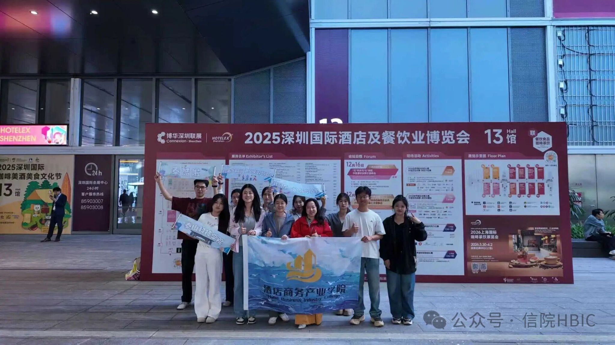 12月16日至18日,晋中信息学院酒店商务产业学院负责人陈曦老师带领4名第五期实训班优秀学员,奔赴深圳国际会展中心,参加2025深圳Xhotel国际酒店及餐饮业博览会。这场展会以“HOTELEX SHENZHEN 2025”为主题,覆盖H9-H16号馆,从餐饮设备、食品综合供应链,到全球风味CHA文化节、咖啡茶饮等板块,将酒店餐饮全产业链资源浓缩于展区之中。