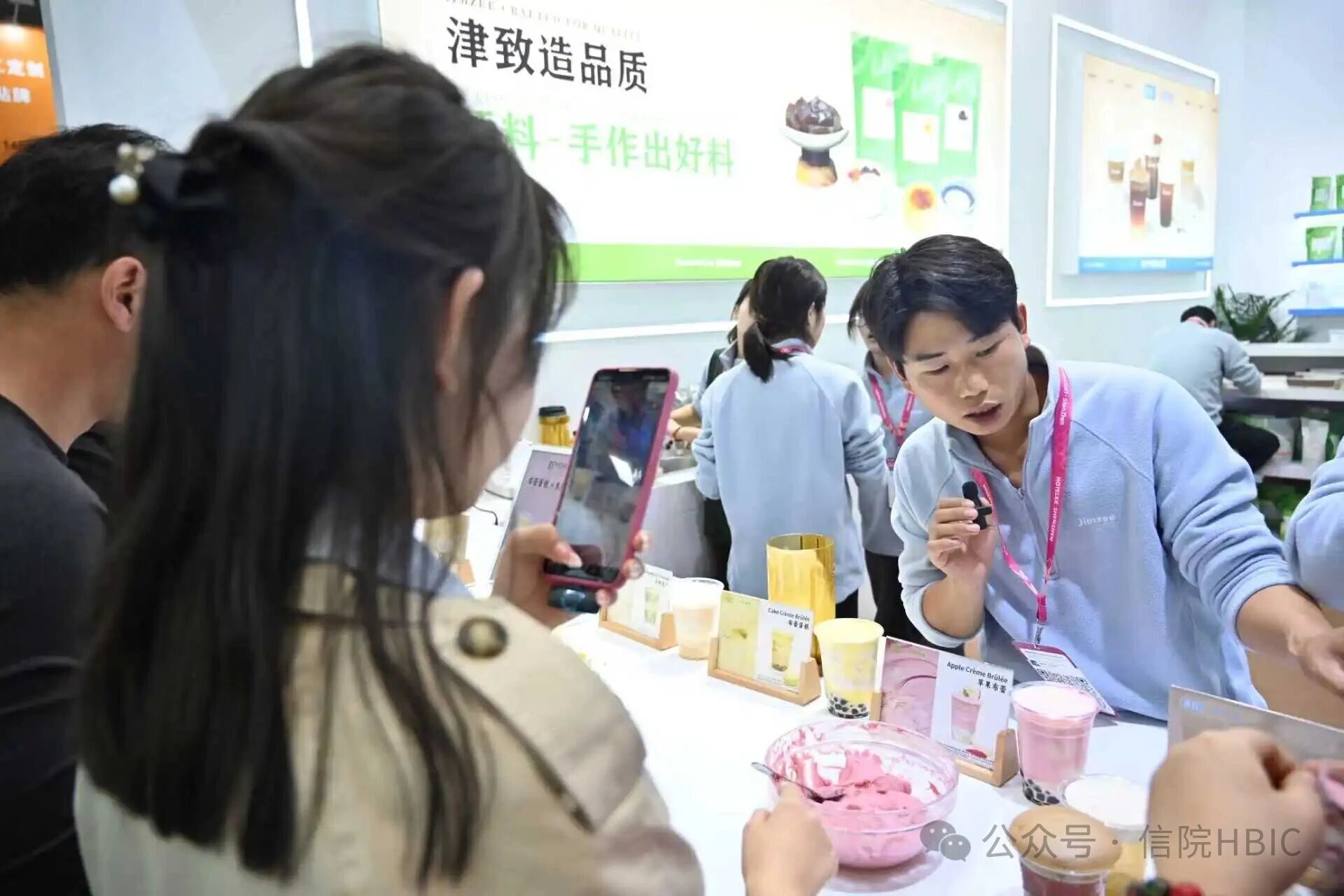 H13馆咖啡茶饮美食节与H15馆咖啡与茶专区成为直播流量高峰。学生提前试喝冷萃咖啡,以“入口丝滑无苦涩、尾调含柑橘香”的生动描述吸引观众,还现场向展商请教新中式茶饮配方逻辑并实时分享。在“全球风味CHA文化节”展区,师生创新采用“镜头扫美食+讲解文化背景”模式,搭配“你最想尝试哪种风味”互动话题,让在线人数突破千人,不少观众留言“跟着直播涨知识,下次展会一定去”。