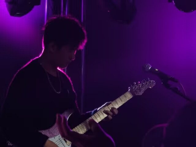 没有老师指导,就对着视频慢放拆解乐句;看不懂谱子上的专业符号,就追着学长问半天,然后回来一遍遍地练。手指磨出茧子,和弦按错了又重来,有时候一首歌的前奏要练上几十遍才能连贯。有好几次练到深夜,排练室里只剩我一个人,电吉他的声音在空荡的房间里回荡,我也会偷偷怀疑“是不是真的不行”,可一想到“能组乐队”的目标,又咬着牙拿起吉他继续练。