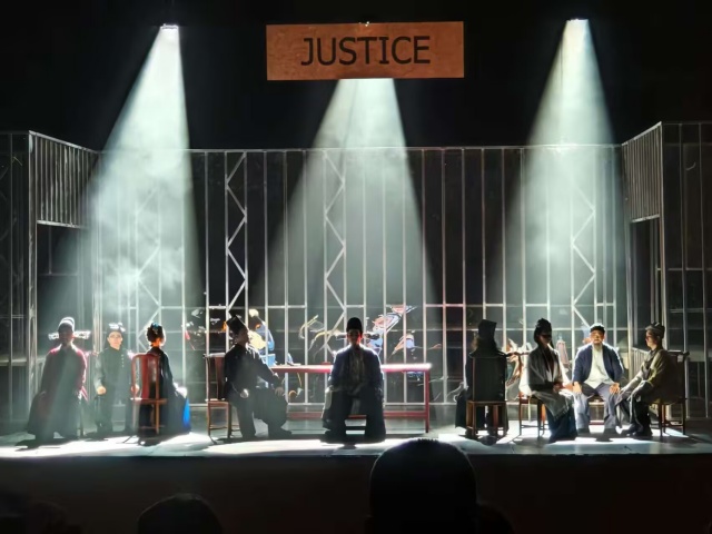 他引导我回想过往那些咬牙坚持的时刻,打捞与角色共通的共鸣。有次排练到深夜,我卡在“公堂对峙”的片段里,越演越僵硬,急得蹲在地上掉眼泪。同组演赵怀罗的同学没急着走,反而蹲下来模仿起柳悠然的语气:“你看,她不是‘硬刚’,是‘把害怕攥在手心,再笑着抬眼看人’。”说着还捏起我的手腕,让我感受“攥紧拳头却语气平静”的张力。那天我们在排练厅对着镜子反复练“眼神的温度”,直到走廊的灯都灭了一半,我才终于摸到了柳悠然“外柔内刚”的分寸——说话轻,但每个字都像落在石头上。