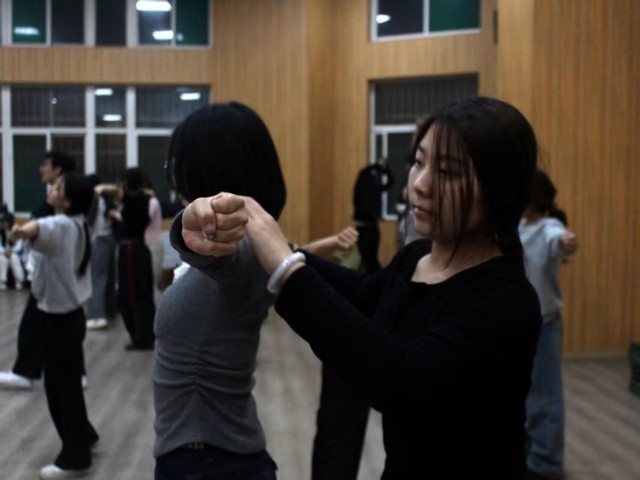 这次大赛的舞蹈以街舞与现代舞为主调,对深耕民族古典舞和拉丁舞多年的我来说,无疑是一场不小的挑战。截然不同的风格体系里,动作复杂多变、节奏快到令人窒息刚接触时我常常跟不上节拍,动作僵硬又笨拙,甚至一度怀疑自己是否真的适合这支舞蹈。但骨子里对舞蹈的热爱,不允许我轻易退缩。别人练一遍,我就私下加练五遍、十遍,对着镜子反复抠细节、找节奏,一点点适应新的发力方式。尽管偶尔还是会下意识带出以往的舞蹈习惯,但在一次次重复排练中,我慢慢找到感觉。