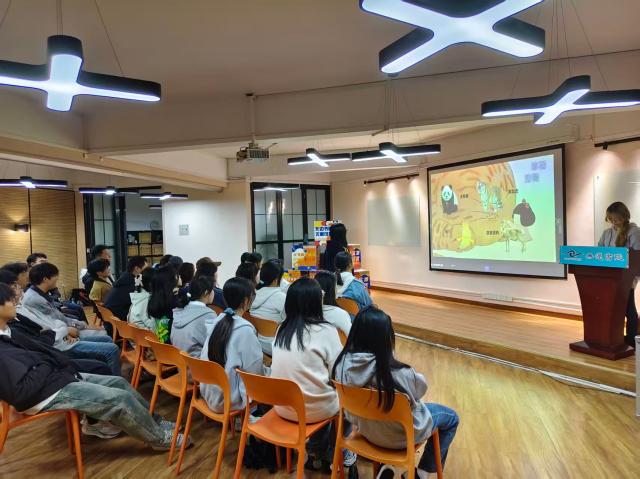 活动伊始,动物生存图谱科普展便以强烈的视觉冲击拉开序幕。展板上,濒危动物的生存现状、非法野生动物贸易的残酷数据、城市流浪动物的生存困境一一呈现,那些曾在纪录片中遥远的画面,此刻以具体化的方式直击在场每个人的内心。“原来东北虎野生群种只剩数百余只”“原来流浪猫的平均寿命不足家猫的三分之一”……随后,进行濒危动物知识竞答环节,一个个问题的抛出与解答,同学们的神情从最初的轻松逐渐转为凝重。何佳杰同学在竞赛后坦言“以前觉得保护动物是专家的事,现在才发现我们对身边的动物朋友们一无所知,实在是疏忽了。”