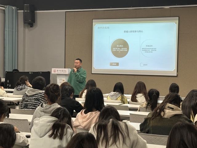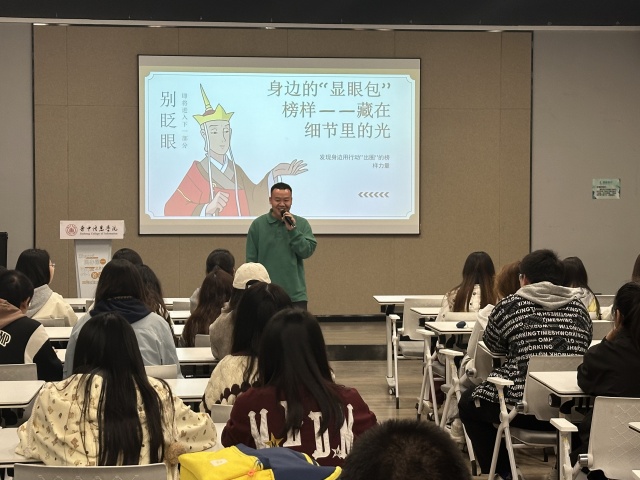 当大屏幕投射出“显眼包”这一网络热词时,报告厅里泛起轻笑涟漪。史老师目光扫过台下求知若渴的年轻面庞:“今天我们要重新定义这个词——“真正的‘显眼包’从不靠奇装异服博眼球,他们的闪光点藏在晨读时的琅琅书声里,躲在图书馆闭馆后的台灯下,融在志愿服务时被汗水浸透的后背衣裳间。那些敢于展示自我、专注深耕领域的奋斗者,就是校园里最耀眼的‘显眼包’”。