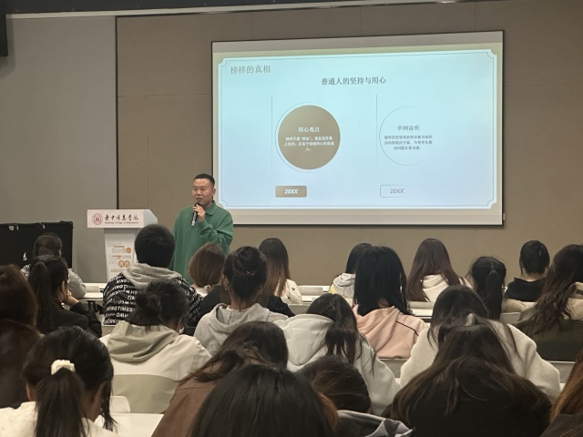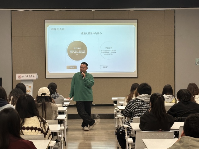 褪去镁光灯下的圣洁光环,打破教科书式的刻板印象,一场直击心灵的成长对话正在热烈展开。10月15日16:00,淬炼商学院·国际商学院2023级辅导员史张炜于上河书院207 Q+·赋能空间,以“榜样不是‘神仙’,是会发光的‘显眼包’”为主题,用接地气的语言、鲜活的案例和深邃的思考,为学子勾勒出新时代青年应有的精神图谱。这场别开生面的说完满活动如同一面明镜,映照出平凡人身上的不凡光芒,也叩击着每个年轻心灵对“何为榜样”的深层追问。