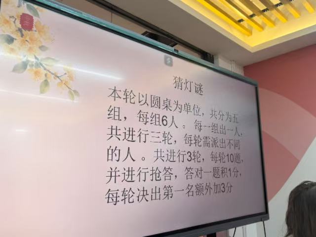 中秋怎么能少了猜灯谜呢。说起灯谜,古代的文人雅士在元宵、中秋以灯谜助兴,而今天我们将猜灯谜进行创新,成为看图猜灯谜。今夜我们一起走进这场灯与谜的盛宴,在笑声与思考中,同学们紧盯大屏幕踊跃答题,时不时还能听到同学偷偷讨论,同学们的热情点燃这个夜晚!