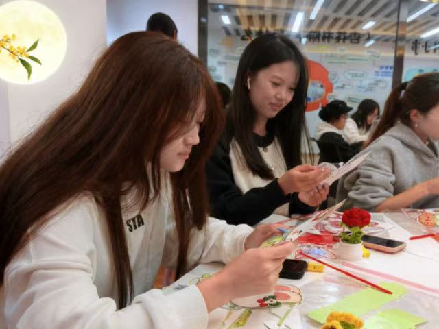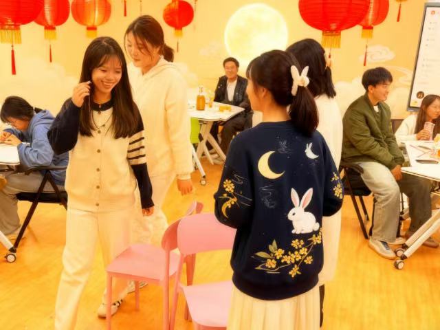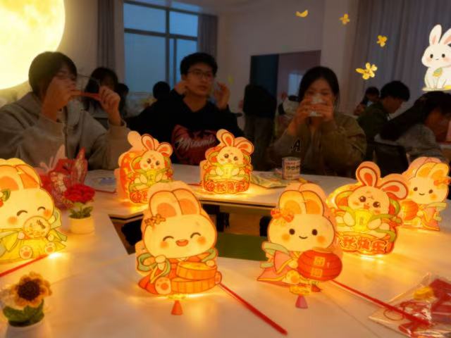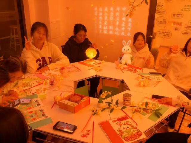 伴着节日的轻快氛围,彭博同学娓娓道来中秋节的起源与传统习俗,用生动的分享拉开温馨序幕。随后的DIY花灯制作环节恰好承接这份节日意趣,大家以小组为单位亲手设计专属花灯,一笔一画、一丝一线间赋予节日独特的专属记忆,协作中悄然加深情感联结。现场同学们热情投入,从起初手忙脚乱到后来熟练从容,在动手实践里释放创意,节日喜悦也在指尖流转。