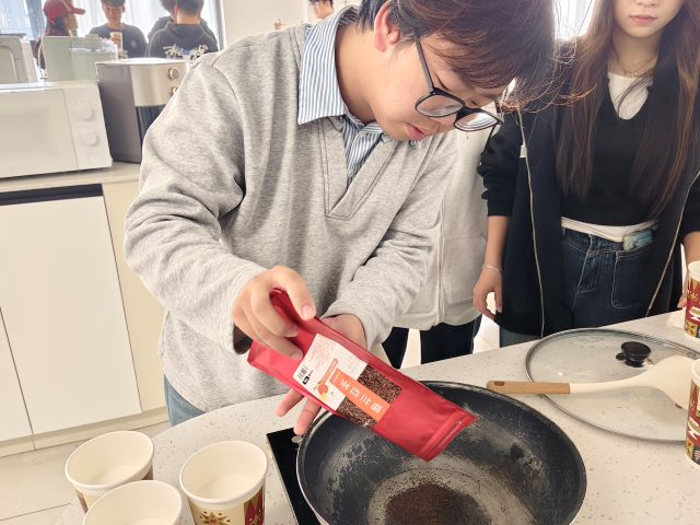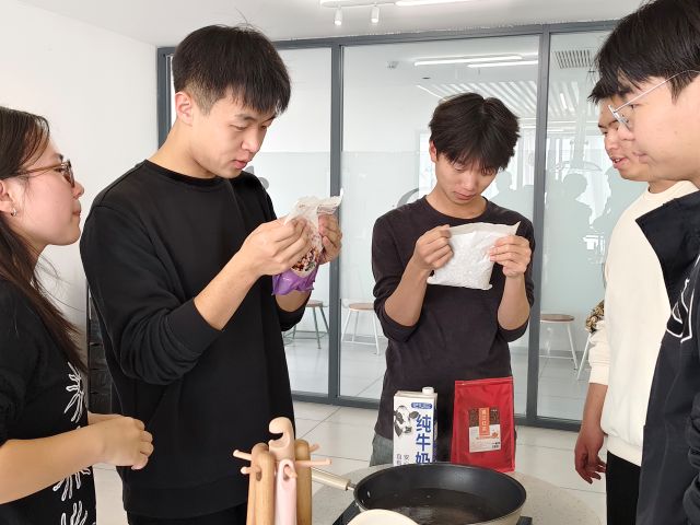 一杯用牛奶、茶叶、芋圆等简单食材做成的手作奶茶,承载的不仅是味觉体验,更是经管2402班同学们对完满教育的践行,从活动前期的食材采购、奶茶纸杯分装,到现场的煮制调配、团队协作,再到后续的成果分享、场地整理,经管2402班的同学们全程参与其中,在“策划力、执行力、表达力”的多维锻炼中,实现了从“活动参与者”到“育人主体”的角色转变。
