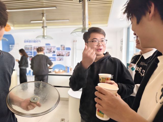 一组同学在研发“暖芋珍珠红茶”时,大家分工,既有负责精准煮制红茶底、控制白糖用量的,也有人专注把控芋圆与珍珠的煮制时长以保证软糯口感,还有人则在奶茶纸杯外侧手绘简约图案增加辨识度,最终呈现的作品不仅口味平衡,同时兼具视觉巧思,成为现场热门款。这种“分工+共创”的模式,让同学们在磨合中学会沟通、在碰撞中激发灵感,充分体现了完满教育中个体闪光与团队共赢的生长逻辑。