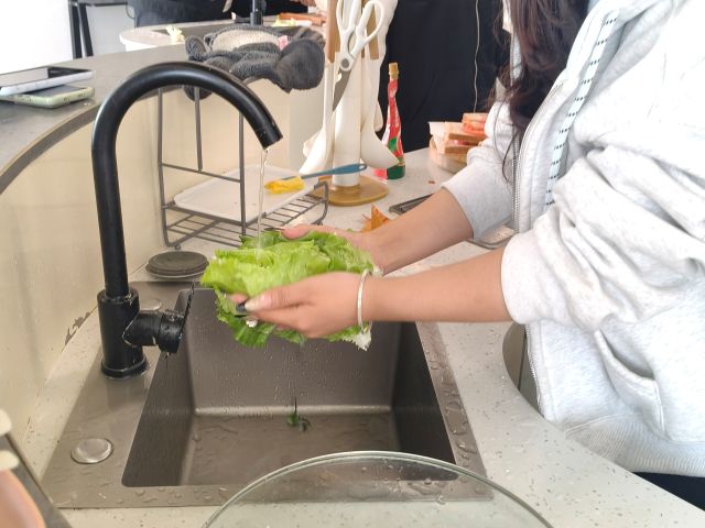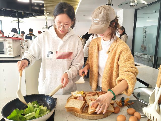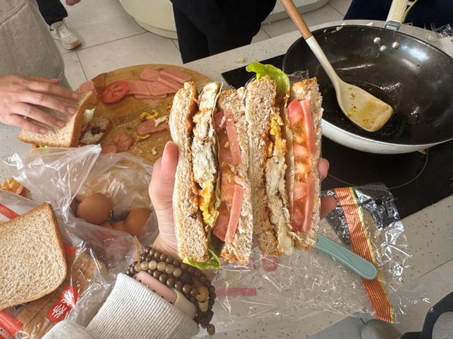为丰富课余生活,提升同学们的动手实践能力与团队协作意识,10月15日下午14:00,金融2402班于毣谷书院的共享厨房内成功举办“探索美食奥秘,争做厨房能手”三明治制作竞技体育活动。全班同学以小组为单位踊跃参与,在轻松愉悦的氛围中共同体验美食制作的乐趣与团队协作的魅力。