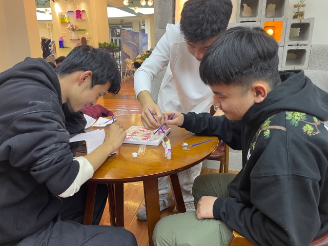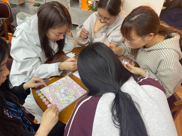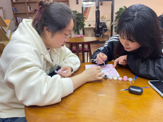 活动过程中,没有专业绘画基础,参与者只需跟随内心,让颜料在指尖流淌:有人以澄澈的蓝铺展内心的宁静,有人用明媚的黄勾勒对生活的热爱,有人借柔和的粉包裹偶尔的不安——每一笔色彩都是情绪的“出口”,通过解读色彩与笔触背后的心理密码,引导参与者看见隐藏的自我需求,在创作中完成一次温柔的内心梳理。活动当场有同学纷纷说道“原来不用‘画得好’,也能和自己好好对话。