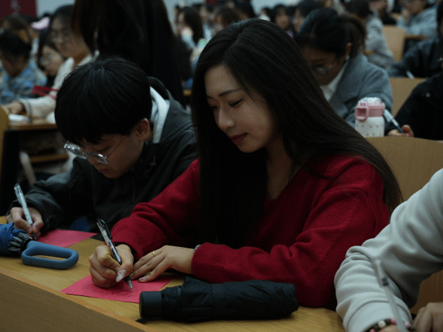 策划臻于成熟,发布会进入最具仪式感的环节。全场学子在纸上写下 “我的专业理想如何与‘时代之约’形成呼应” 的答案。随后,承载着青春豪情的纸飞机齐射而出,如同一份份“理想样张”飞向会场前方。这一刻,抽象的理想被具象化,个人的信念在集体的放飞中形成了强大的情感共振,完成了从内心构思到向外宣告的关键一步。