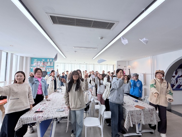 纸载心愿,飞向远方。听完大家精彩的分享后,组织者让大家将写下的纸条折成纸飞机,等待大家折好后,随着一声“放飞”,纸飞机同时腾空,有的在空中划出优美的弧线,有的落在了角落里,还有的盘旋片刻后落在同学手中。现场的欢呼声不断,气氛也热闹了起来,大家欢声笑语,看向自己纸飞机所飞的方向,捡到他人纸飞机的会轻声阅读上面的内容,在分享中传递心灵的温暖与力量。飞向天空的纸飞机寓意着心灵的美好与自由的向往,太阳给予了我们温暖与力量,纸飞机将抽象的情感转化为具体的飞行,承载着大家对自己的鼓励与压力的释放,愿每一份心愿都能被看见、被温暖。