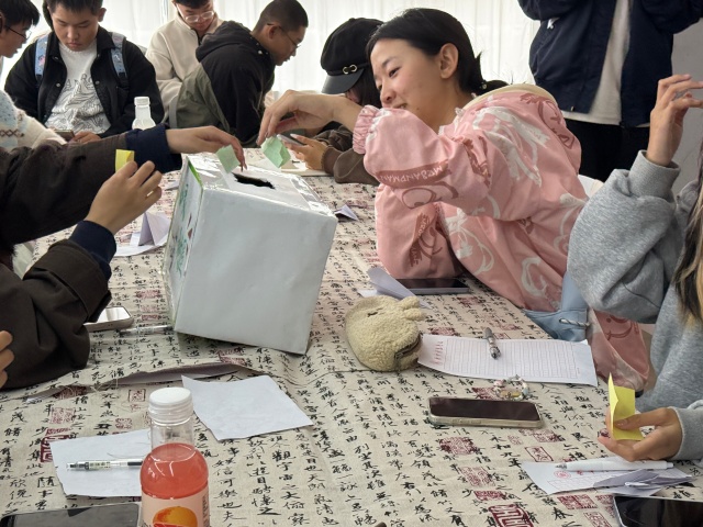 滋养心灵,助力成长之路。“情绪盲盒”的活动开始了,为了让大家更好的表达自己的情绪,组织者准备了一个盒子,同学们在纸上写下近期的烦恼或情绪放入盒子中,依次随机抽取他人的纸条并写下暖心的回应与留言,互相帮助,鼓励。此时,心理健康教育就宛如一座明亮的灯塔,为我们指引心灵的归途。