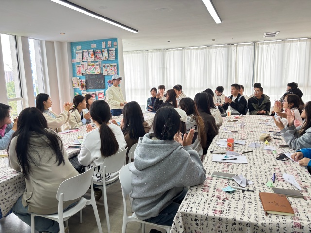等待大家写完后,进入自愿发言阶段,大家都积极主动的轮流站起来分享着自己内心深处的故事与想法。有趣的故事会像一块“情绪磁石”,牢牢抓住听众的注意力,让大家跟着情节笑、跟着角色忧。往往反差感强的角色,会打破常规的自带设定趣味,能快速让听众记住角色。同时反转不断的情节,看似无解的困境需要靠一个小细节化解,但每一次反转都能带来新鲜感。