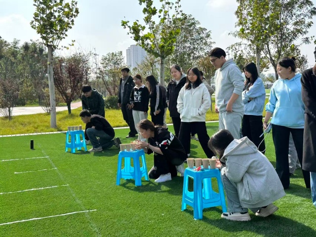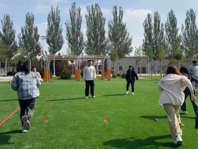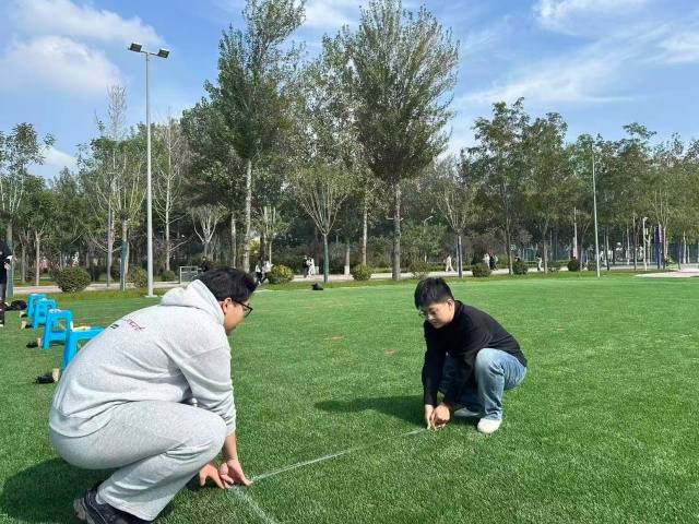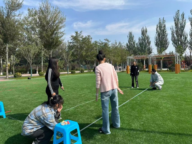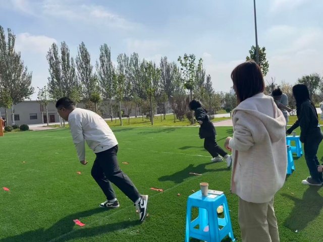 活动筹备前期,从项目设计到场地布置,提前规划出多个极具趣味性与协作性的项目区域,在草坪上用白线和红线划定比赛范围,摆放好活动所需的道具,事无巨细,为活动的顺利开展奠定了坚实基础。