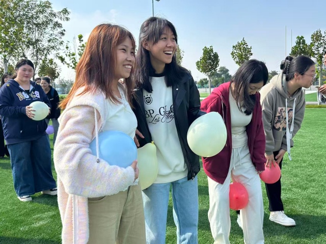 “气球互动”环节同样精彩纷呈,同学们手持各色气球,这一项比拼的就是勇气,比的就是挤破气球的速度,只有勇敢踏出第一步才会有出彩的未来。彩色的气球在草坪上穿梭飞舞,与同学们的笑脸交相辉映,成为了校园里一道亮丽的风景线。此外,还有团队协作类的接力游戏,同学们在奔跑与配合中,尽情释放着青春的活力,将团队的凝聚力展现得淋漓尽致。