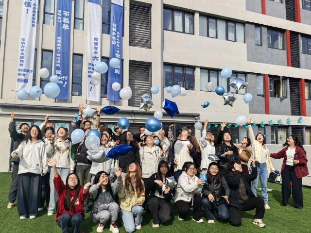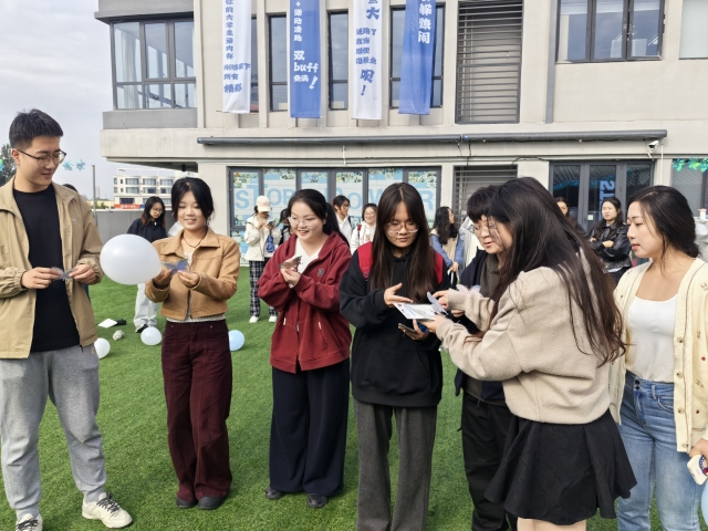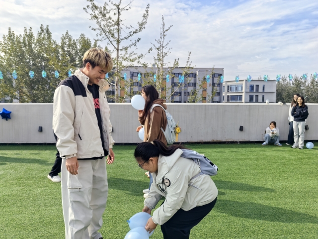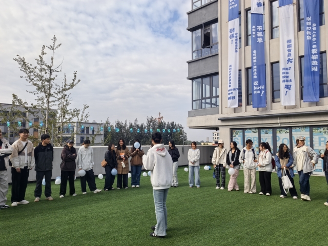 活动尾声,同学们手持盲盒礼物与气球,对着开阔天空齐声喊出“压力退退退!”,相机定格下一张张灿烂的笑脸。此次天台活动不仅帮助大家释放学业、生活压力,普及心理健康知识,更增强了班级凝聚力。