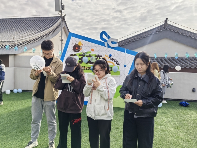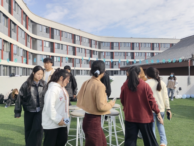 盲盒惊喜,风传快乐,传递温暖,装满解压球、薄荷糖的盲盒在天台依次被抽取,抽到盲盒的同学需分享“今日开心小事”。“早餐吃到了爱吃的肉包”“来天台的路上看到超可爱的小狗”……细碎的美好伴着风被诉说,温暖在露天空间里流淌。小小的盲盒不仅带来惊喜,更让大家发现生活中的幸福瞬间。