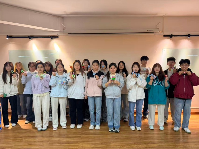18:00创作环节结束,进入作品展示环节。各小组依次上台,精致的作品,赢得台下阵阵掌声。 活动落幕时,参与同学纷纷与自己的作品合影,资产2401班活动负责人王艺静同学表示,此次活动不仅是一次手工创作,更是一次班级凝聚力与学院文化氛围的展现,未来班级还将推出更多贴近学生需求的文化活动。