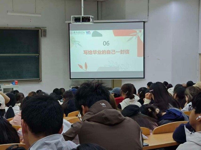活动中,王军御老师现场发放“大学四年规划图”,引导同学们分阶段设定目标——短期(一学期)、中期(一学年)与长期(四年),涵盖学业、能力与兴趣等多个维度。有学生感慨:“以前总觉得四年很长,真正写下目标才发现,每一步都值得认真规划。”此外,王军御老师还向新生详细介绍了学校图书馆资源、心理健康教育中心、职业生涯规划课程以及完满教育各类平台,鼓励大家主动借助校园资源,赋能自我成长。在“写给毕业的自己一封信”环节,同学们郑重执笔,将青春的憧憬与承诺落于笔端。信件封存后由班级统一保管,期待毕业之时,开启这场跨越时空的青春对话。