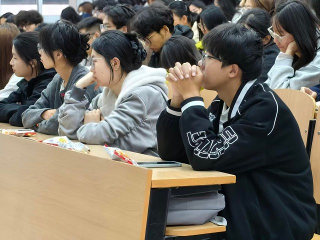 榜样力量,是最生动的教材。王军御老师邀请大四优秀学长刘益,与新生分享他的大学历程。丰富的实践经历,尤其是那些曾让他跌倒又站起的挫折,成为推动他快速成长的重要动力,也让在场新生深受触动。随后的“中国跨度”知识问答环节,围绕国庆阅兵、航天发射等国家重大事件展开,新生踊跃抢答,在轻松互动中感受国家发展的磅礴力量,增强了民族认同与自豪。王军御老师总结指出:“爱国从来不是一句空洞的口号。学好审计专业,为经济发展保驾护航;遵守校规校纪,共同维护校园秩序——这些都是青年人爱国情怀的具体体现。”