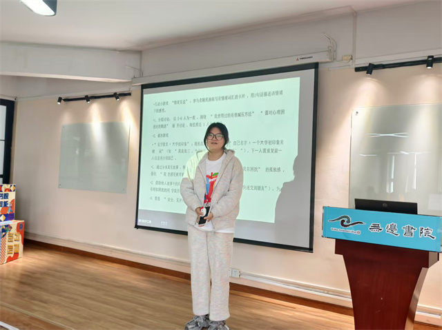 班会伊始,班长围绕“认识自我”分享实用方法:“从每天记录3件小事,到主动向室友请教‘我哪里可以做得更好’,这些小举动都能帮我们更懂自己。”轻松的开场后,“情绪盲盒”互动正式开启 吕志浩同学抽到“委屈”后,分享了在深圳打工时因陌生环境遇挫、靠睡一觉平复心情的经历;王琪同学抽到“平静”,结合自身乐观性格,讲述了面对问题始终从容的心态;钮若彤同学则抽到“焦虑”,回忆了抢门票失利后,通过转移注意力缓解情绪的过程,三人的分享既展现了不同情绪下的真实状态,也让现场同学收获了多样的情绪调节思路。