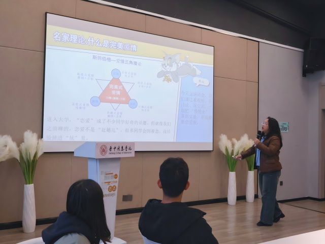 在“直面恋爱常见问题”环节,徐爽老师针对“不安全感”“过度依赖”“自我贬低”“嫉妒心强”等典型困扰,结合《2024年轻人校园恋爱报告》数据,指出男生“太自我,不在意对方感受”、女生“太在意对方,忽略自己”的普遍遗憾,引导学生正视情感中的自我成长。她还针对“身边人恋爱自己着急”“黏人影响生活”“被催确定关系如何拒绝”等实际困惑给出解答,强调恋爱是“人生选择题而非必答题”,鼓励学生守住“自我节奏”,在独立中经营健康感情。