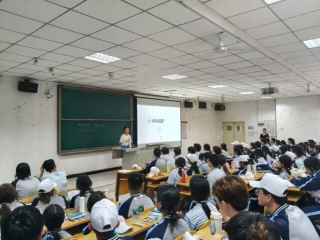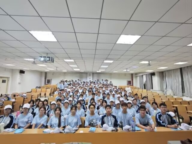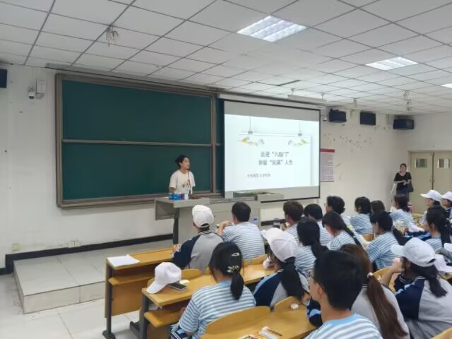 活动接近尾声,全体新生与张冰璐老师一起在教室里合影留念,镜头定格下大家青春洋溢的笑脸。张老师站在队伍中间,向同学们送上第一波专属祝福:“愿你们在今后,既有逐梦的勇气,也有收获的喜悦,每一步都坚定又闪亮,我们一起加油!”