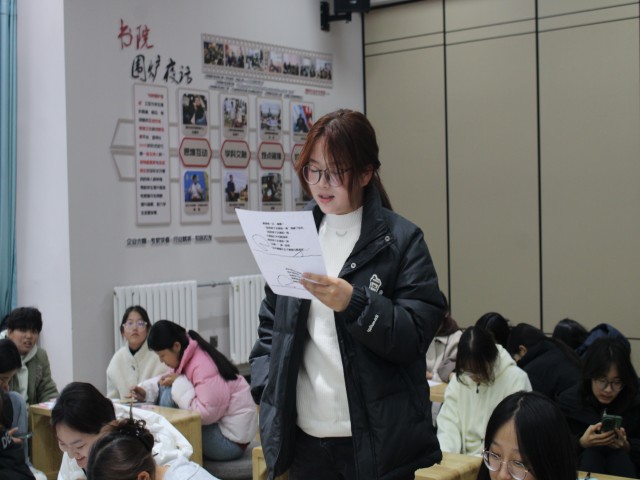 全班分成5个小组,围绕“主角最终结局”展开讨论。有的小组认为主角会接受不完美,“它会明白,找不找得到那一角,自己都能好好生活”;有的小组觉得主角会找到新的成长方式,“它可能会发现,自己可以通过学习新技能来‘长出’自己的一角”。各组代表分享时,大家积极交流,对人生的“完整”和“缺憾”有了更多思考。