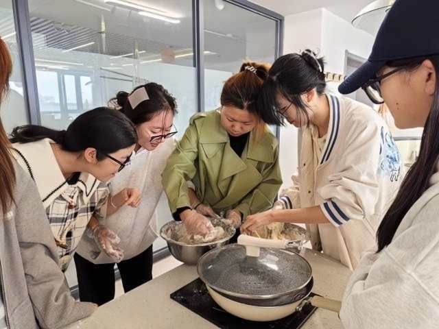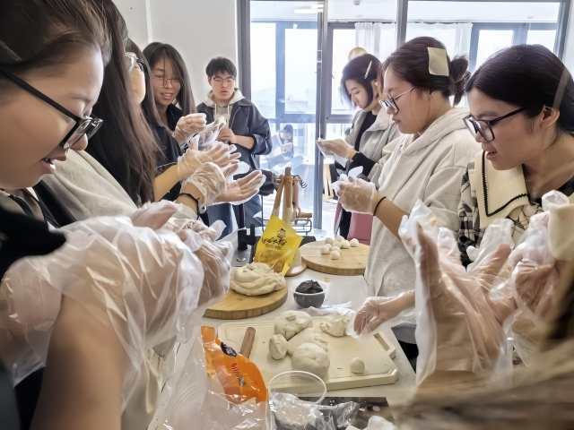 面团揉好后,制作组同学们将其分成若干小块,然后用手掌轻轻压扁,形成一个小圆饼。接着,同学们取适量的馅料放在圆饼中央,然后将圆饼的边缘慢慢捏合,将馅料包裹在里面。制作过程中,同学们的笑声和谈话声此起彼伏。有的同学因为手法不熟练,包出的汤圆形状怪异,引得大家捧腹大笑;有的同学则因为包馅过多,导致汤圆破裂,但大家并没有气馁,而是互相帮助,共同解决问题。这种团结协作的氛围让整个团队充满了温暖和欢