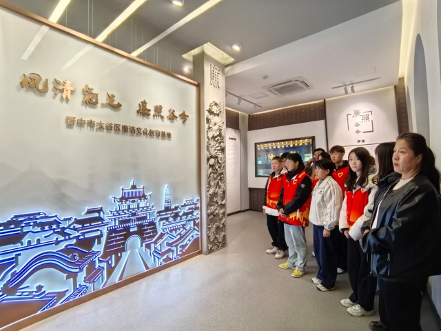 青砖黛瓦映初心,廉韵悠长润古城。活动渐入高潮,志愿者们参观了太谷区廉洁文化教育基地,开展了一场 “廉洁文化打卡”学习。馆内设四个展厅,首先引入眼帘的是“溯源”厅,声光电结合的蓝色幕布上李白诗人与青年进行一场跨时空的对话,魅力无限!孟母故里情深,“三迁教子”的典故滋养着世代太谷人的品格。最为让人津津有味的非“寻迹”厅莫属,厅内展现晋商诚信精神,麦秆画、掐丝珐琅,尽显非遗光彩。“传承”厅中“互动触控滑轨屏”让人难忘,让《清明上河图》在指尖绘动;创新尽在“赓续”展厅!“望闻问切”互动装置让中医理念走进我们生活。