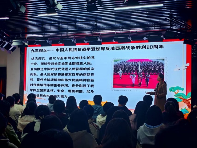 参与此次阅兵主题活动,我既看到同学们在互动中探索列国阅兵特色的热情,更欣慰于大家从中国阅兵的“秩序之美”和“历史留白”中读懂家国情怀。这种以鲜活形式传递大国精神的过程,正是思政教育的生动实践。作为辅导员,我更明白:新时代的思政教育不必拘泥于说教,像这样将大国精神、文化底蕴融入鲜活的主题活动,才能让青年真正将家国情怀刻进心里、化为行动,未来也会继续设计贴近学生的活动,引导他们在感知中国力量中成长为有担当的时代新人。
