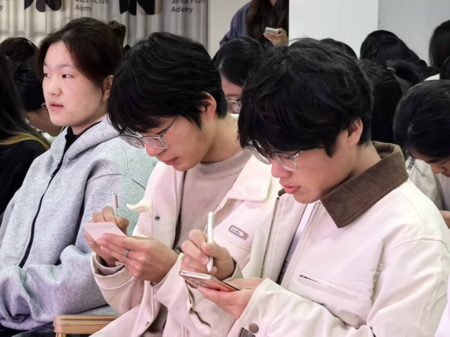 当同学们在列国阅兵的特色风貌中穿梭后,活动的核心便聚焦于中国式浪漫,通过挖掘中国阅兵所蕴含的精神内核与文化底蕴,开启一场领略大国精神与文化魅力的独特旅程。在观看阅兵视频的过程中,中国阅兵的“秩序之美”尽显典范,数千军人步伐精准,步幅、摆臂、间距分毫不差,这不仅是军纪严明的直观体现,更源于对极致精准的执着追求,背后凝结着中国军人严苛训练的汗水,每处细节都彰显着深厚的集体主义精神与严谨作风。紧接着,有同学指出,中国式浪漫也蕴藏在军人眨眼不超40秒的坚守中,每一次克制的眨眼,都是保家卫国的生动诠释。辅导员弓思敏顺势引导,组织同学们亲身体验“40秒不眨眼”的实践小游戏。大家逐渐领悟:那份看似遥远的中国式浪漫,其实就蕴藏于具体而坚韧的日常坚守中,无声,却有力。