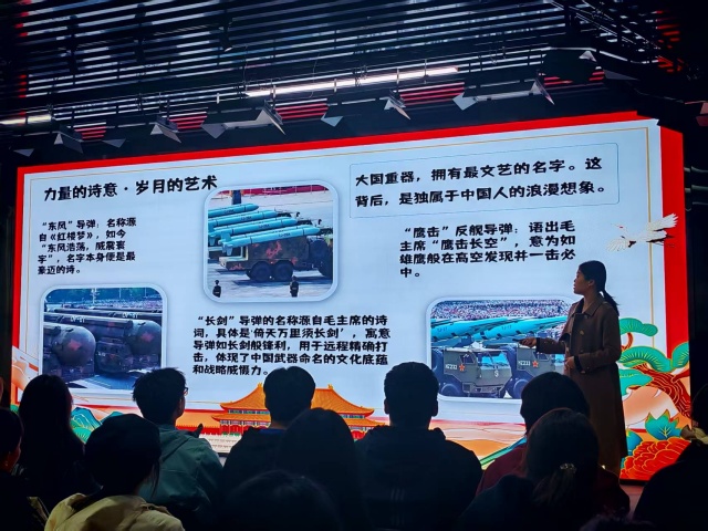 当阅兵式遇上弹幕文化,当全球视野碰撞中国式浪漫,一场关于国防力量与民族精神的多元对话在活动现场热烈展开。为帮助同学们拓展国际视野,厚植家国情怀,辅导员弓思敏于10月22日15:00-16:00在太古科幻学院301教室开展了一场以“全球阅兵‘显眼包’与中国式浪漫”为主题的辅导员说完满活动,带领同学们穿梭于各国阅兵特色场景,深度解码中国阅兵的精神内核,开启了一段兼具军事观察、文化解读与精神共鸣的深度之旅。