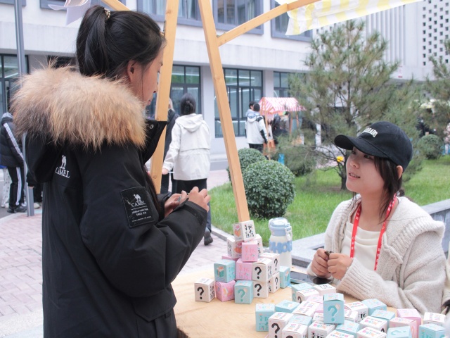 “未知的盒子里,藏着今日份的小幸运”。情绪盲盒区的欢呼声就没断过。彩色纸盒印着笑脸或星星,在多层展示架上排得整整齐齐。同学们轮流上前挑盒,拆盒的瞬间满是期待——有同学摸出惊喜小礼物,眼睛亮了起来;也有同学展开暖心鼓励卡,嘴角悄悄弯成弧度。旁边的“贸易模拟情绪局”更有创意,每个同学手里攥着5张情绪卡片,“勇气”“快乐”“耐心”“自信”“乐观”的字样亮闪闪的。“我用‘耐心’跟你换‘快乐’行不行?”“那我得再加张‘自信’才换!”小声的商量里满是热闹,讨价还价时的笑声传得老远。同学们玩得不亦乐乎,还悄悄学会了“管理情绪财富”——原来“耐心”能换得“快乐”,遇事多一分从容等候,往往能收获满心顺遂。