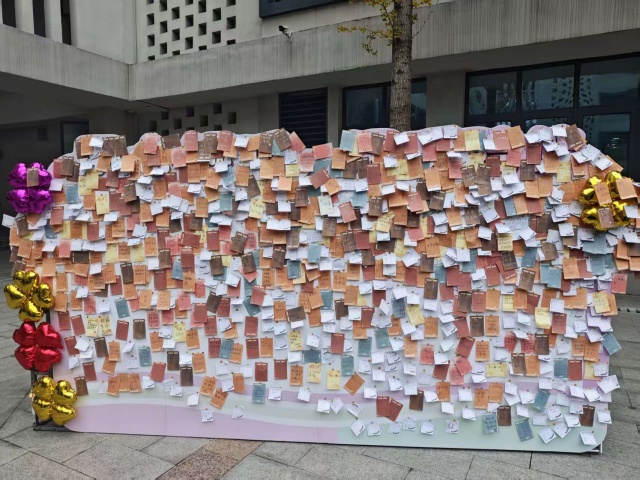 要说全场最治愈的角落,非无声倾听板莫属!这里贴满了五颜六色的便签纸,上面写满了同学们的悄悄话——有对学业的困惑,有对未来的憧憬,有生活中的小确幸,也有成长中的小烦恼。而陌生人们暖心的回复,让这里变成了秋日校园里最温暖的一隅。