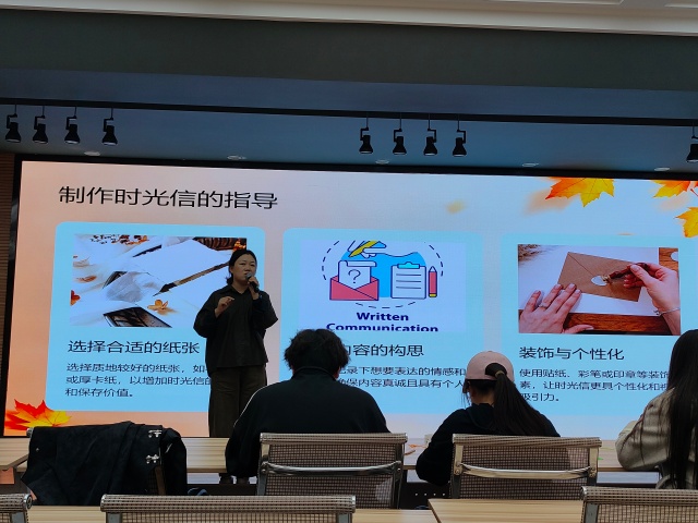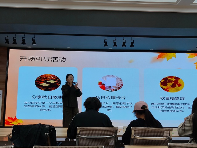 活动伊始,辅导员宿宇老师以精心制作的“国潮养生画卷”PPT引入,画面中,秋日养生场景瞬间吸引了同学们的目光,紧接着一段精心剪辑的秋日养生短片在大屏幕上播放,短片中,传统养生智慧如涓涓细流般呈现,从中医的阴阳平衡到节气的饮食起居,无一不彰显着古人的智慧。宿宇老师借此契机,提出“传统智慧 + 科学验证”的养生理念,引导同学们思考在现代生活压力下,如何运用这些古老而又实用的养生方法进行健康管理。同学们纷纷陷入沉思,对接下来的活动充满了期待。