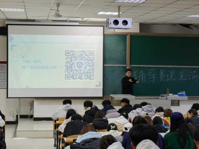 在讲解过程中,郝琛琛老师还特别提到了近年来网络诈骗的新趋势和新特点,他结合近期发生的真实案例,尤其是与大学生生活场景高度相关的兼职刷单、冒充客服、网络贷款、虚假兼职、冒充公检法等新型诈骗手段等诈骗类型,用生动的语言和鲜活的事例,深入浅出地剖析了诈骗分子的惯用手段和背后的心理操控技巧。他提醒同学们,在日常生活中要时刻保持警惕,不轻信陌生人的信息和电话,不随意透露个人隐私,遇到可疑情况要及时与辅导员沟通并向相关部门报告。