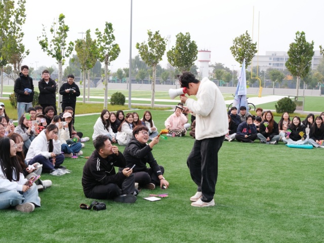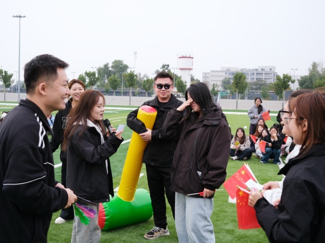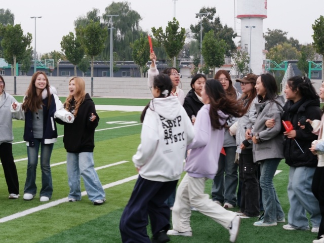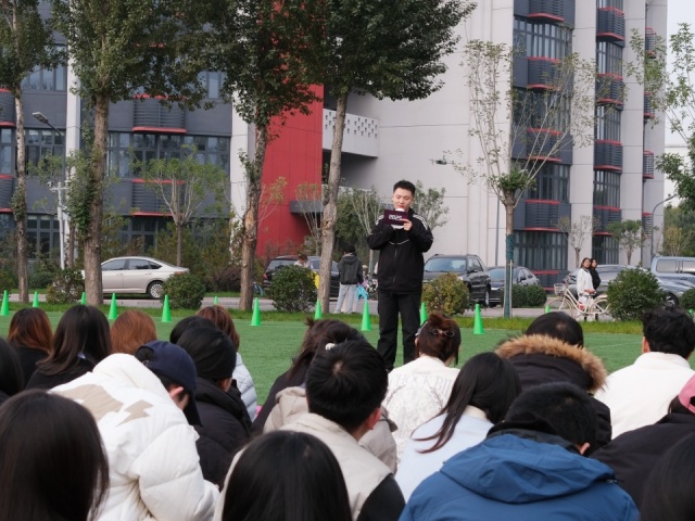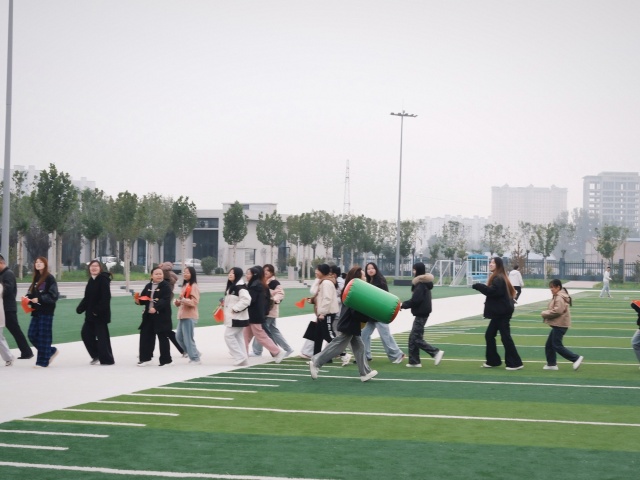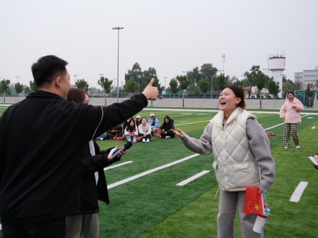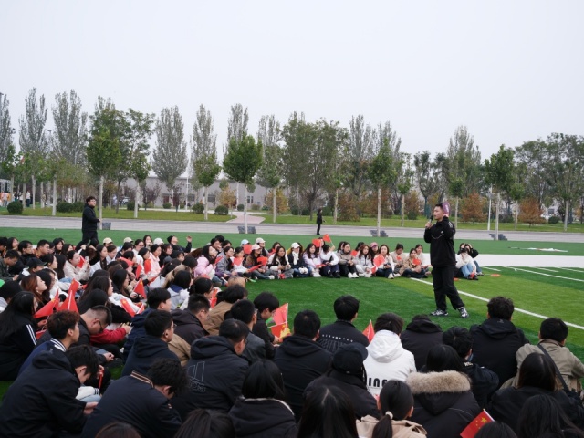 “国庆的热乎劲儿还没散,咱们今天就借着这股劲儿,用‘开溜’的方式,把陌生感都‘溜’走!”10月26日14:30,橄榄球场上,淬炼·国际商学院辅导员刘阳老师带着2025级互联网金融专业专升本的“新”上人们,解锁一场以“团结破冰”为核心、藏着思想浸润巧思的互动活动。每位同学手中都握着一面小国旗,红色的身影在阳光下格外鲜活,让新生在轻松氛围中打破隔阂,于细节里感受集体温度与初心分量。