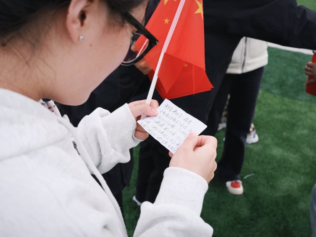 “喊了一下午‘开溜’,大家说说,该‘溜’走什么,又该‘守’住什么?”刘阳老师的提问让现场安静片刻,随即掀起热烈讨论。“要‘溜’走和陌生人说话的尴尬,‘守’住刚建立的友谊!”冀茹玉同学率先发言,引来一片赞同;张封瑞同学接着补充:“我觉得还要‘溜’走做事的敷衍,‘守’住今天举着国旗认真参与活动的劲儿!”